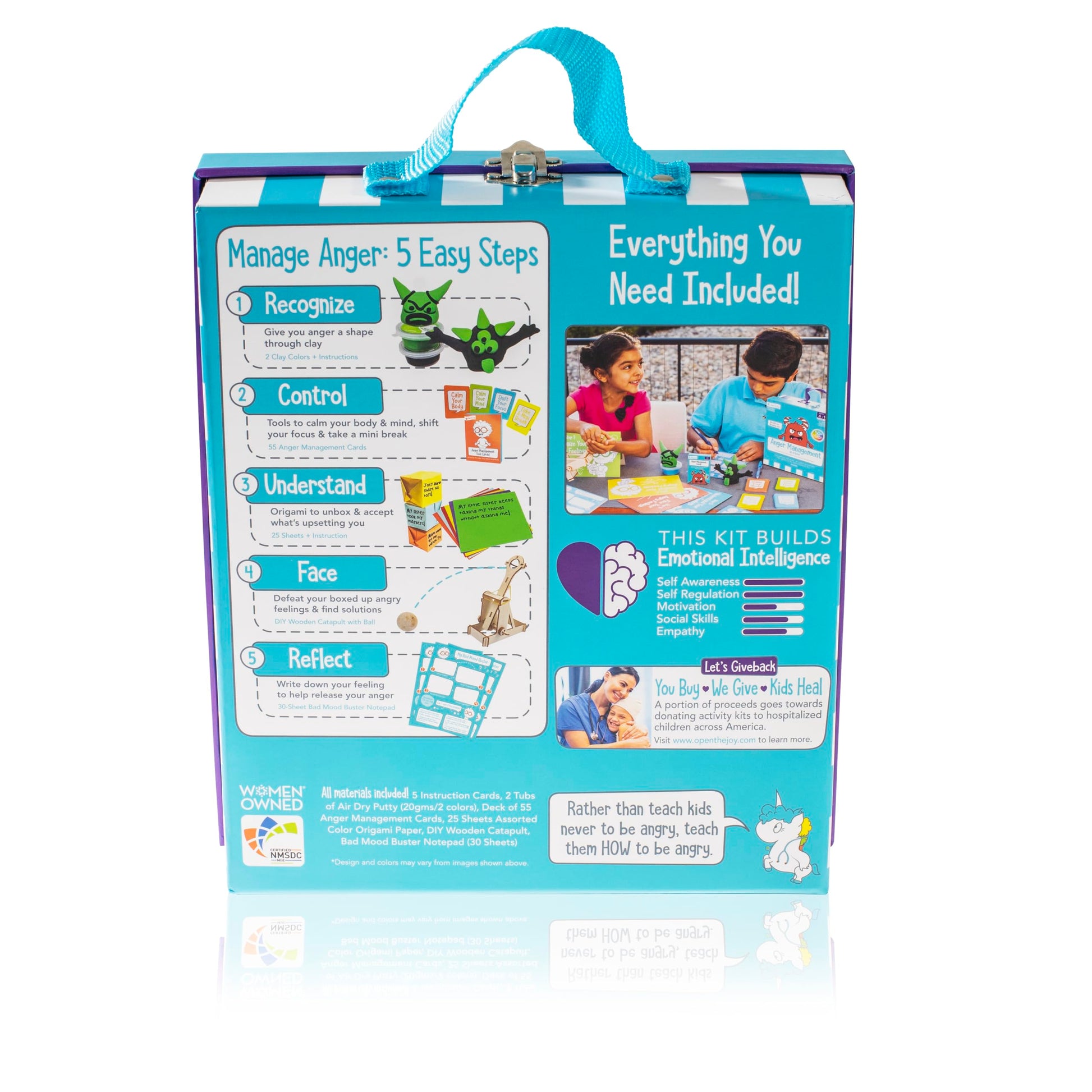 Colourful Anger Management Box for Kids Introducing the Colourful Anger Management Box, a comprehensive kit designed for children aged 4+ to learn about and manage their emotions effectively. This engaging set is packed with educational toys and activities tailored to help children navigate anger and improve emotional regulation. Inside the box, you'll find: 5 Instruction Cards: Easy-to-follow guides for understanding and practicing anger management techniques. 2 Tubs of Air-Dry Putty: Ideal for tactile play and calming exercises. Deck of 52 Anger Management Cards: A full deck of mood cards featuring practical strategies and positive affirmations to manage anger. 50 Sheets of Assorted Colour Origami Paper: Encourages creativity and mindfulness through paper-folding activities. DIY Wooden Catapult: A fun and interactive toy that can be used to channel energy and frustration in a constructive way. 50 Sheet Bad Mood Buster Notepad: A handy tool for jotting down feelings and reflecting on positive changes. With its focus on anger management for children, this kit combines emotion cards for children with innovative anger management toys to foster emotional intelligence and resilience. Perfect for parents and educators looking to support emotional growth in a fun, educational way. Kids games for emotions!