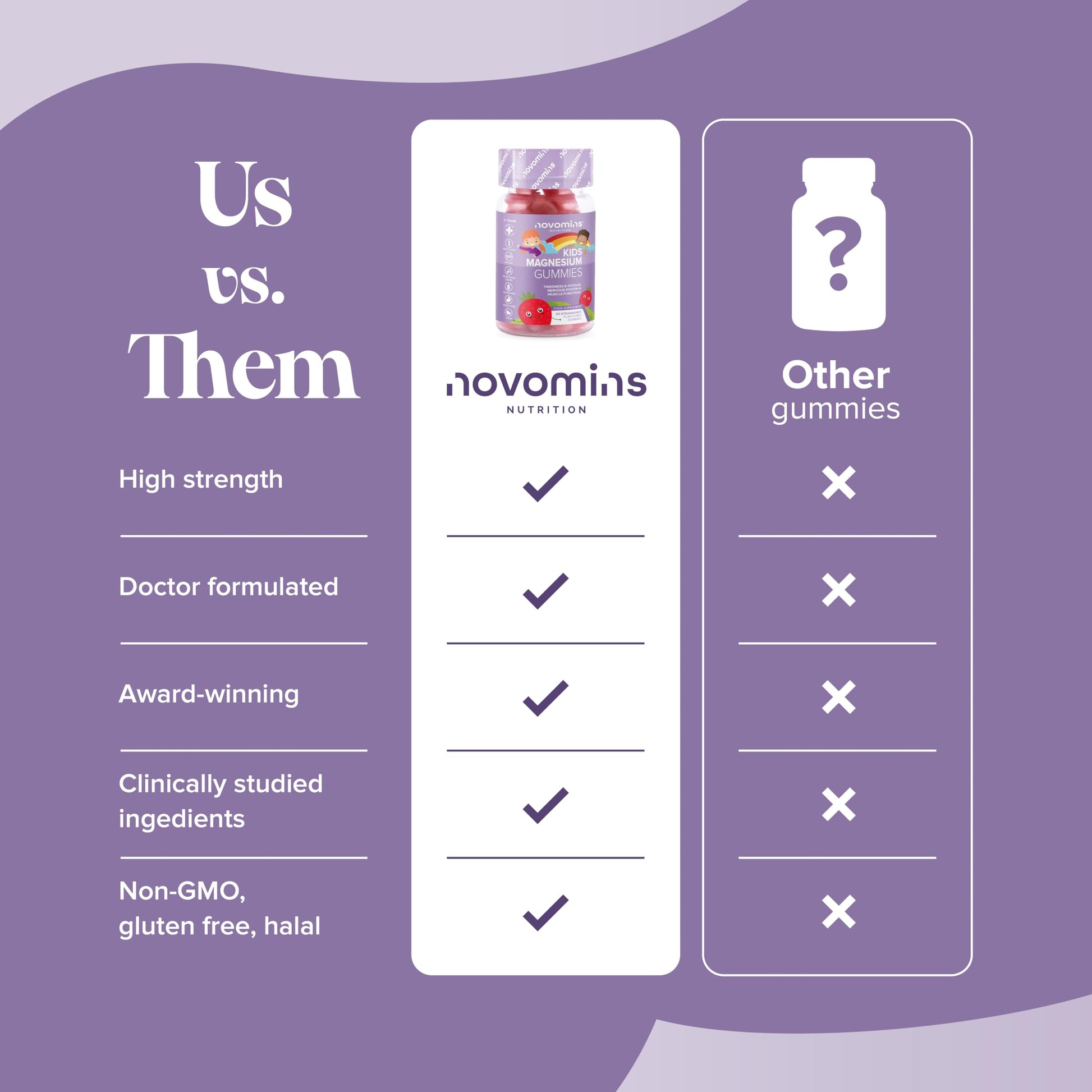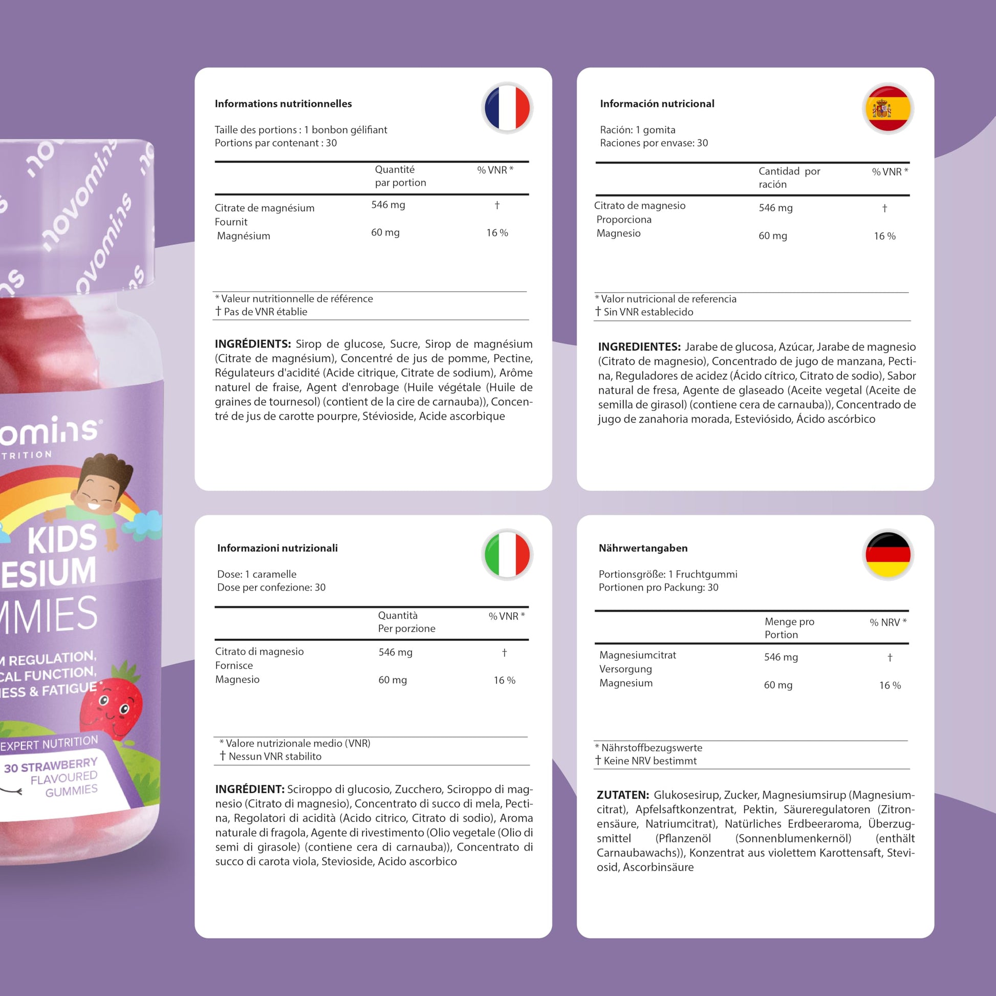- WHY NOVOMINS KIDS MAGNESIUM GUMMIES: Novomins prides itself in bringing you the highest quality supplements whilst being safe and ethically sourced. Our kids magnesium gummies are produced under the strictest manufacturing standards (GMP) with the purest quality ingredient, ethically sourced and easily digestible. We also offer a full money back guarantee if you’re at all dissatisfied with our magnesium for children. Simply get in touch via amazon.