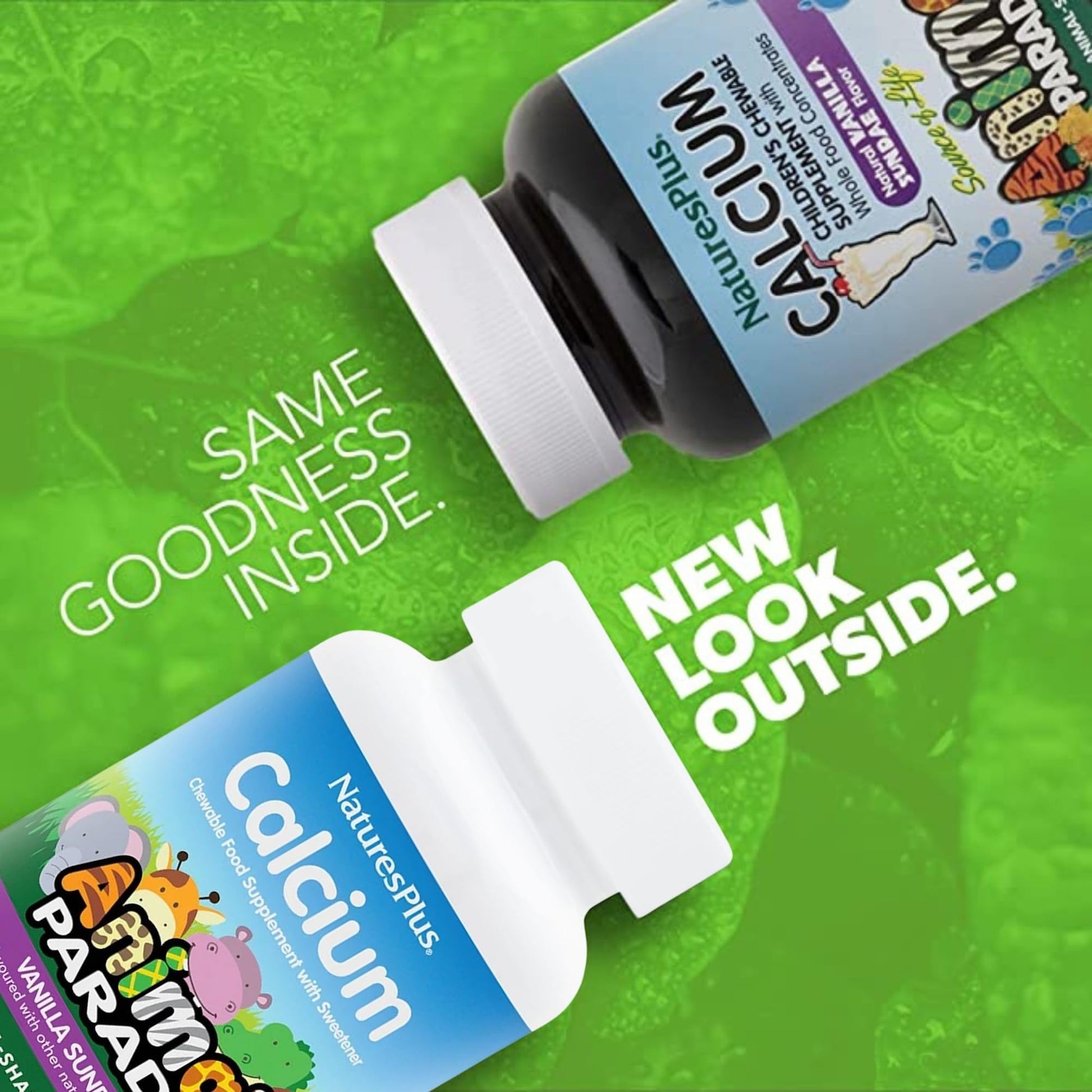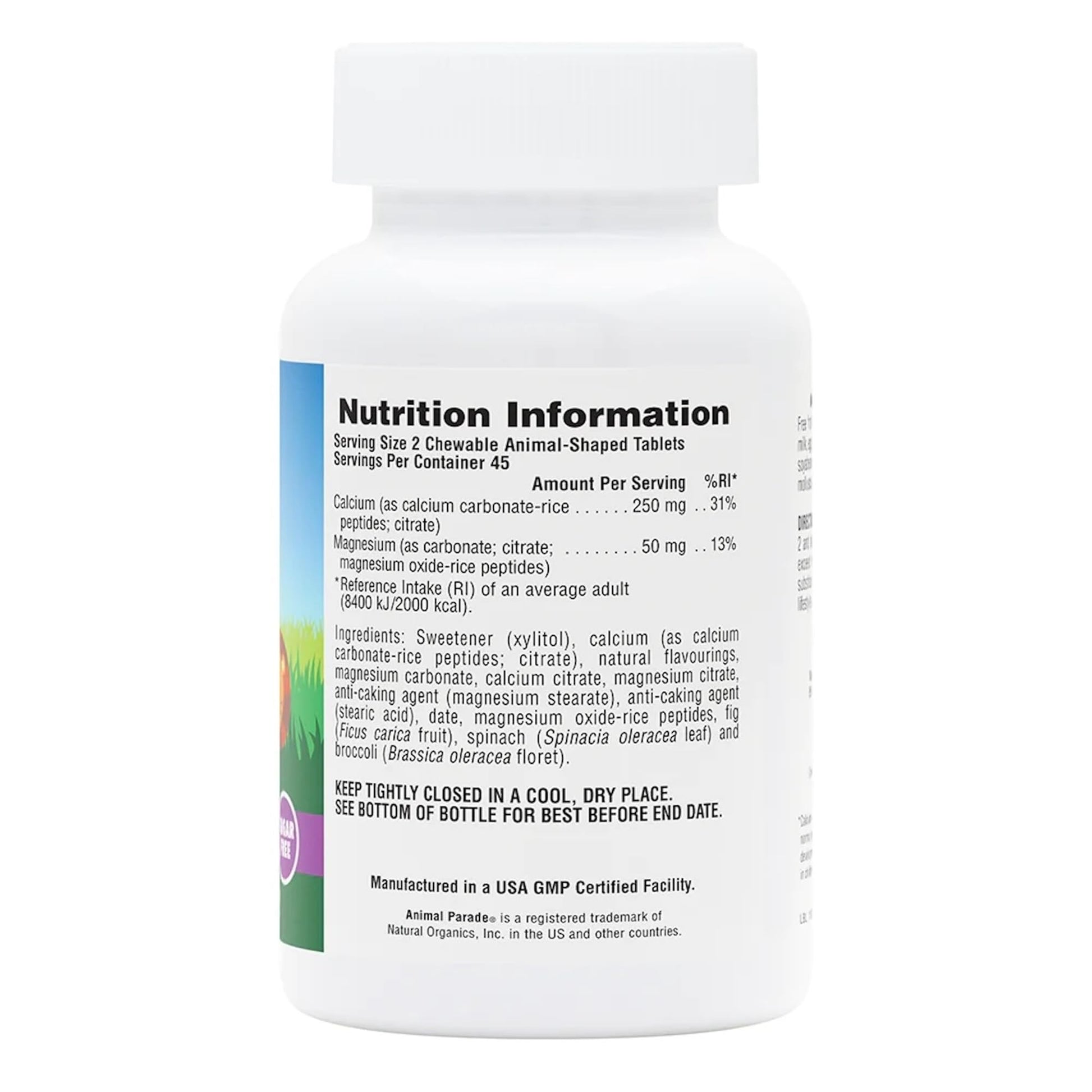 NaturesPlus Animal Parade Children's Calcium Sugar-Free - Chewable Calcium and Magnesium Formula for Kids - Vanilla Sundae Flavour, Vegan, Gluten Free - 90 Animal Shaped Tablets