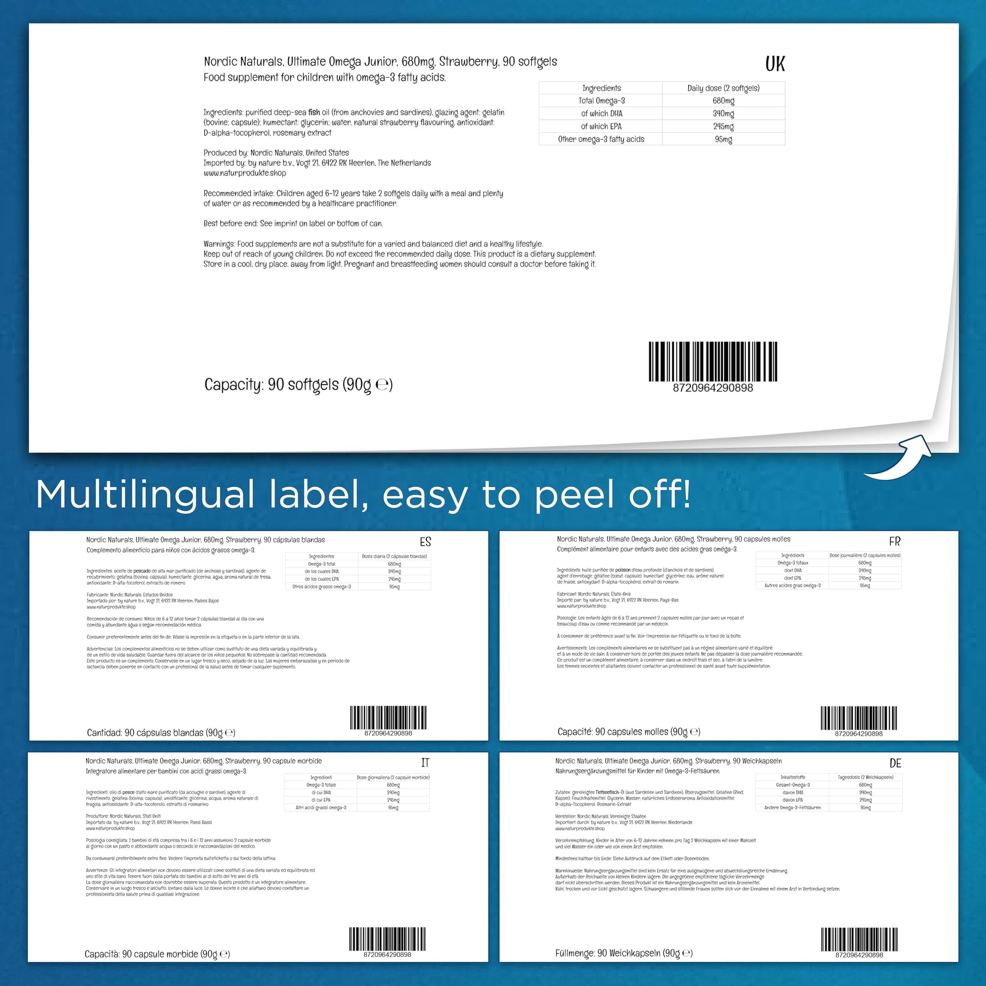 - HIGH-DOSAGE: One dose, 2 softgels, of Ultimate Omega-3 JR from Nordic Naturals contains 680mg of total Omega-3 and of that 340mg EPA, 245mg DHA and 95mg other Omega-3s that you can feed your child every day