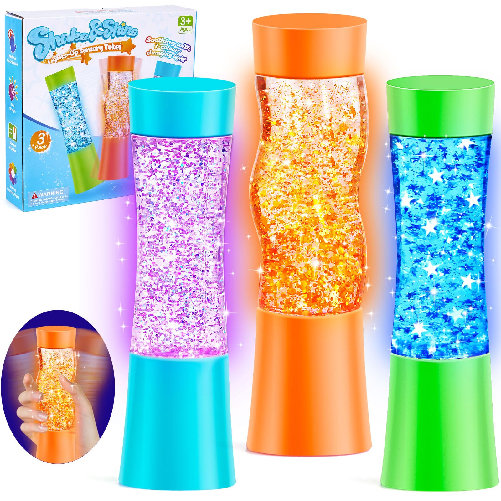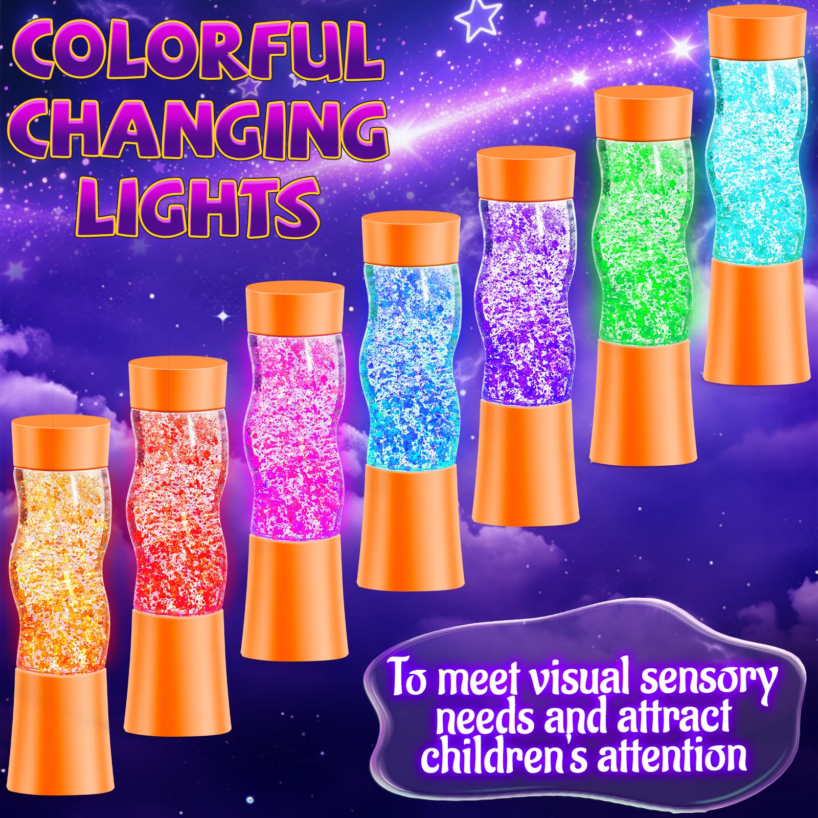 - 3. Variety in Sensory Bottles: Each of our sensory bottles contains three different fillings that sway and descend slowly, offering a calming effect. The mesmerizing visual impact of these sensory tubes reflects beautifully in the dark, creating a wonderful sensory experience.