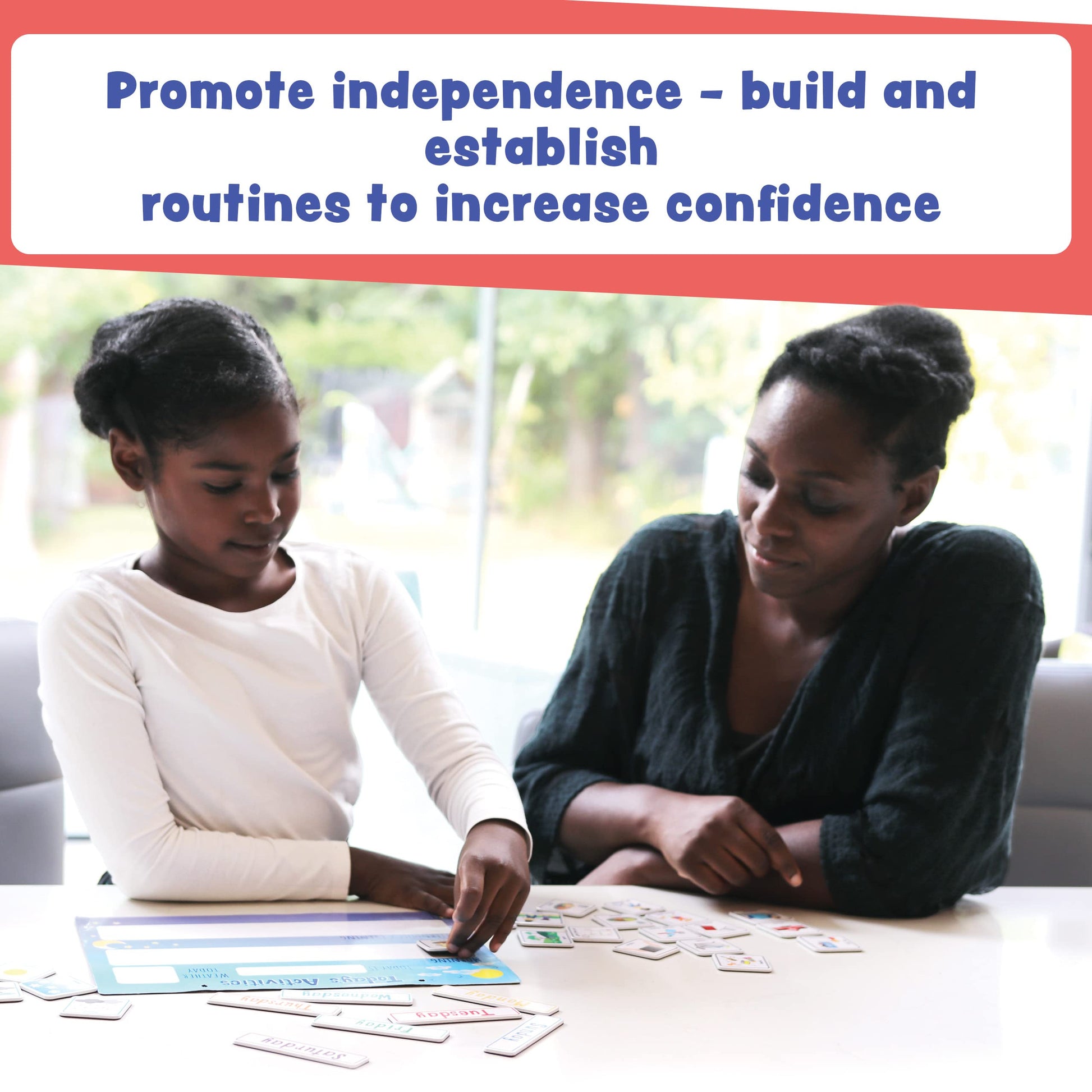 - PROMOTE INDEPENDENCE: Build and establish routines to increase confidence and encourage forward planning and preparation. Aiding to improve your child’s organizational skills and self-esteem.