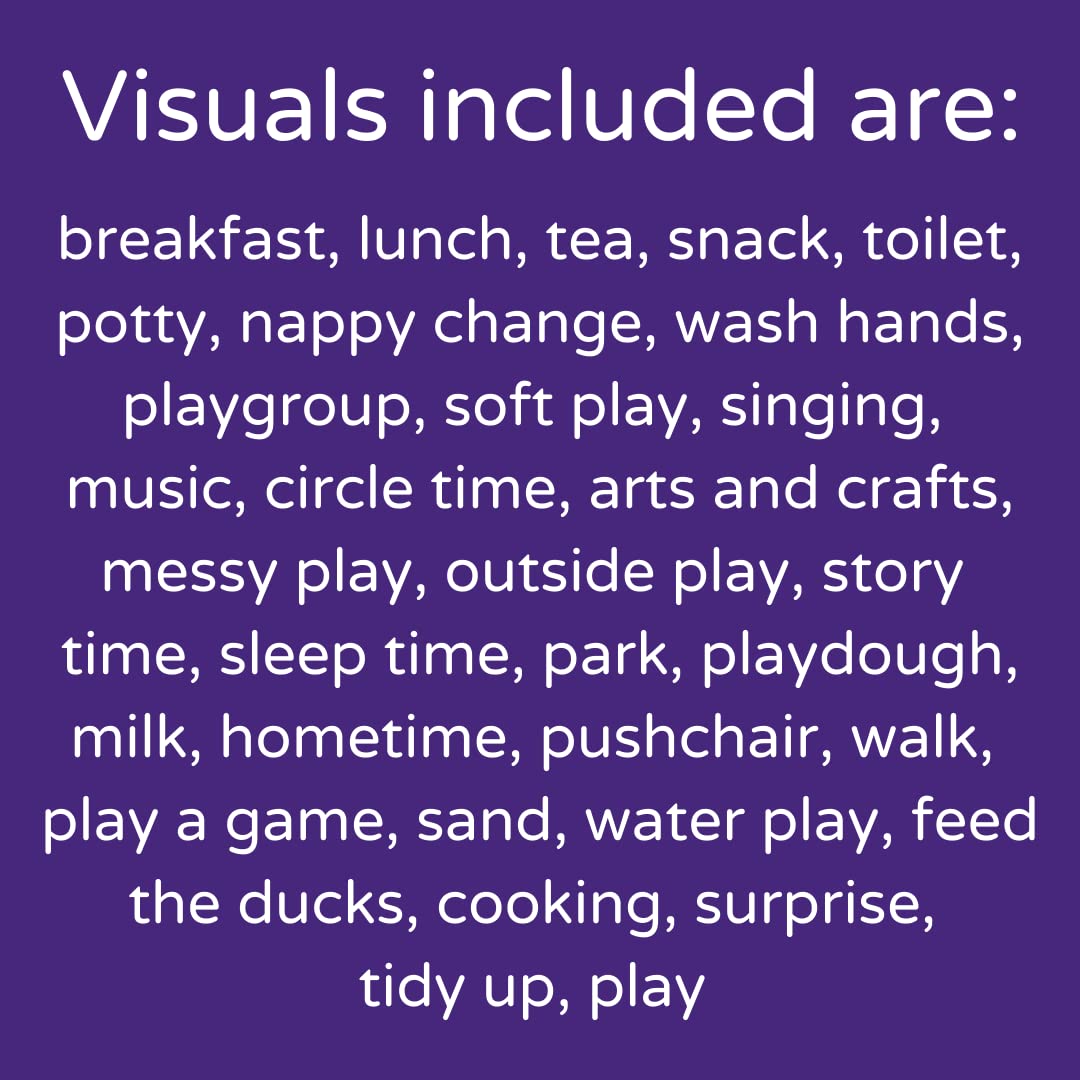 - A visual wall planner of 32 visual symbols or picture cards based around the Early Years Foundation Stage, plus two foamex boards which attach to one another using VELCRO Brand hook and loop.