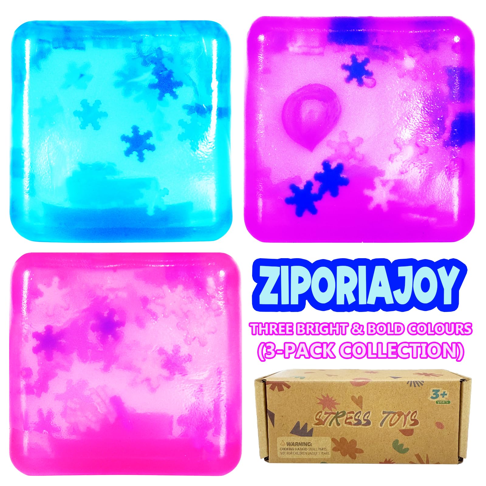 Ziporiajoy Durable Squishy Cube Squeeze Toys, Stress Cube Fidget Toy for Anxiety Relief, Not Easy to Fall Off Sensory Toys for Boys Girls Age 3+ (3 Pack 5cm Snowflake Design)